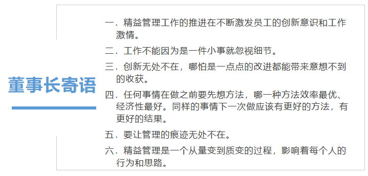 最后,公司董事長吳政杰先生作了精彩的點評并提出了新的要求,希望各部門再接再厲,將精益管理工作持續、深入地推進下去。